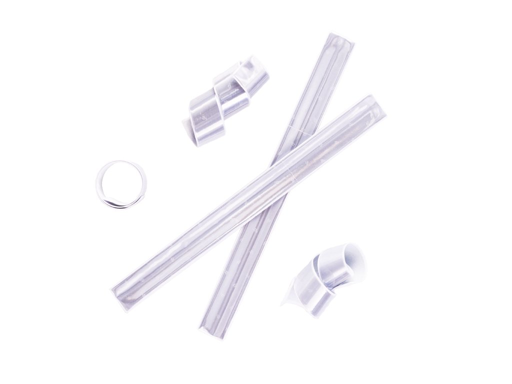 Nejrozšířenější reflexní prvek, oblíbený u dětí, je reflexní samonavíjecí pásek. Použití je univerzální pro dospělé, děti, rychle ovinete na ruku, na nohu, okolo rámu kočárku, kabelku, batoh apod.