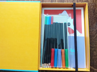 Po otevření krásné a pevné krabičky na Vás čeká 5 fixů, 4 pastelky, 4 předlohy na kvalitním kartónu a návod.