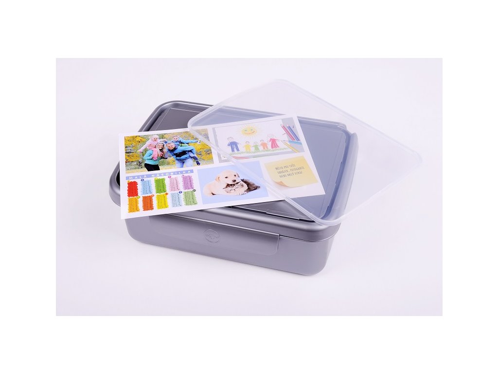 - svačinový box z bezpečného medicínského materiálu (PP atestovaný pro styk s potravinami)