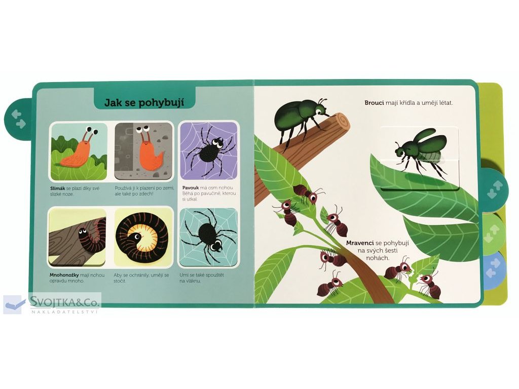 V této knížce mohou děti poznávat hmyz a další malé bezobratlé tvorečky, a současně si tím rozšiřovat základní slovní zásobu.