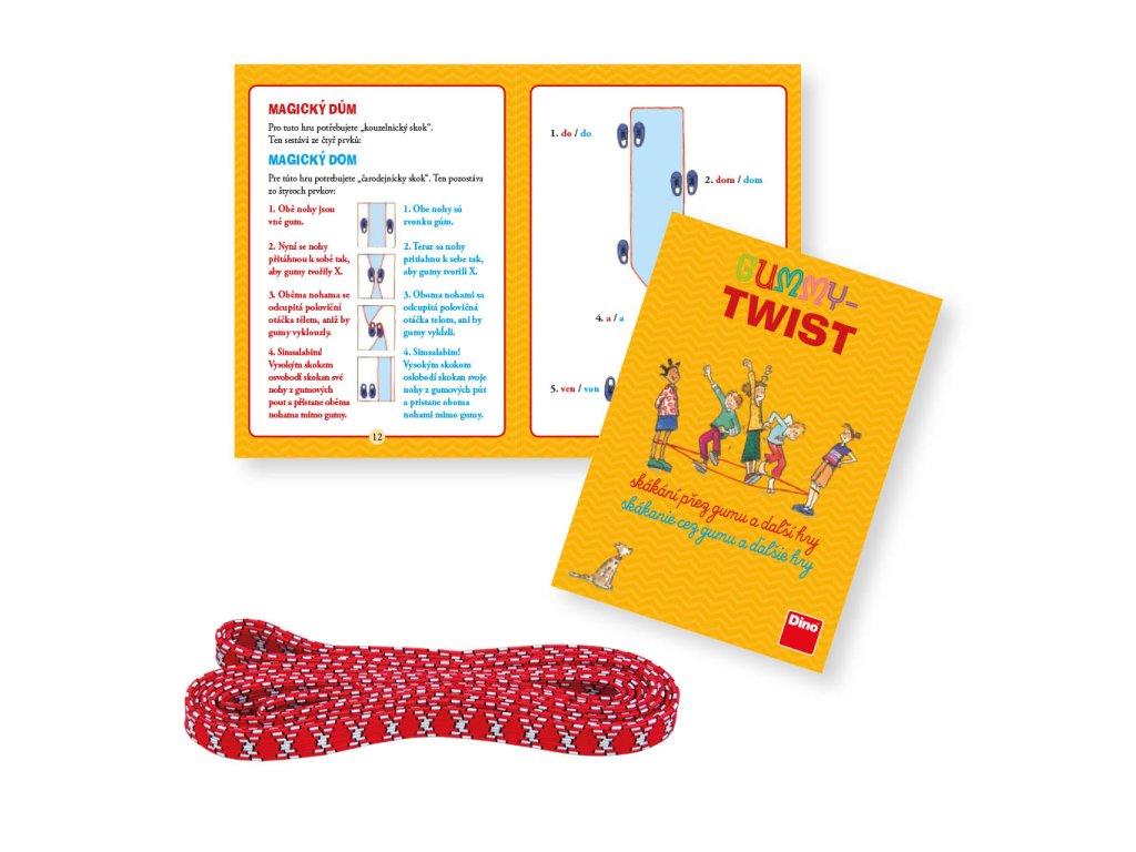 Cestovní hrací sada s gumou na skákání s návody na spoustu skákacích her. A až své nohy dostatečně unavíte, vrhněte se na veselé tleskací a jiné hry, při kterých se odreaguje jak zbytek těla, tak vaše mysl. Jednoduchá pravidla jsou názorně vysvětlená pomocí ilustrací.