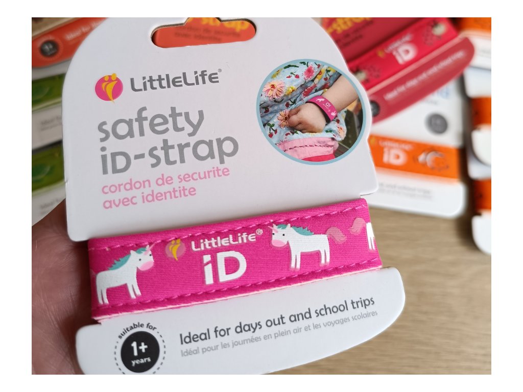 Dětský, neoprénový identifikační náramek s jednorožcem může vaše dítě zachránit v případě ztráty nebo nehody. Uvnitř náramku najdete vloženou ID kartičku na důležité informace.