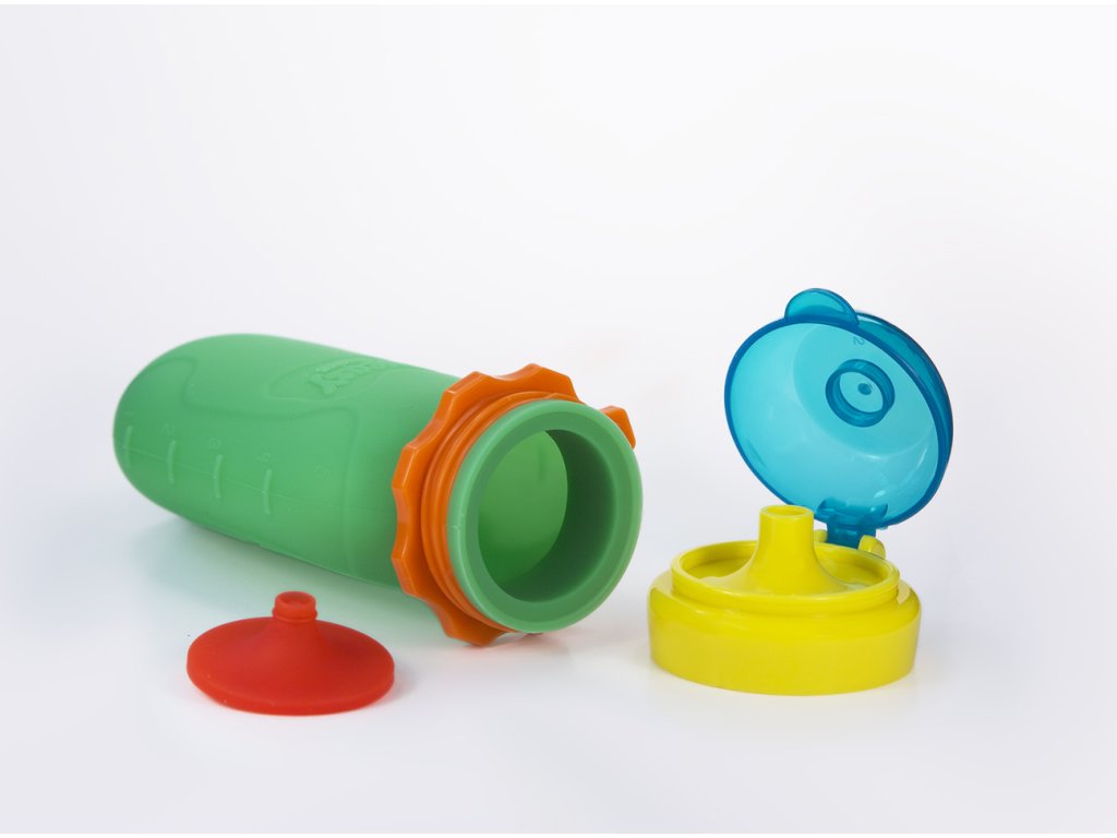 Materiál Squeasy Gear kapsiček: kvalitní jemný potravinářský silikon, bez BPA, PVC a ftalátů, testováno podle směrnic EU.