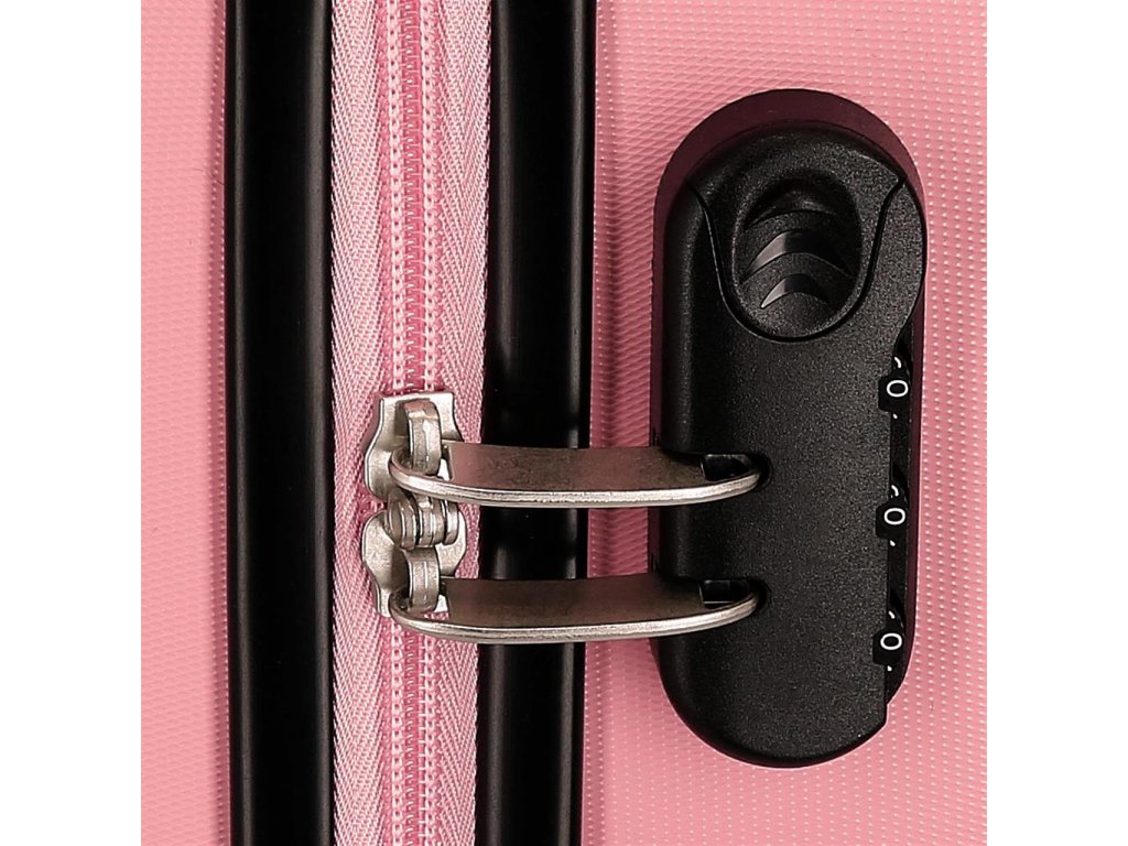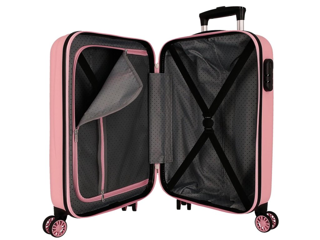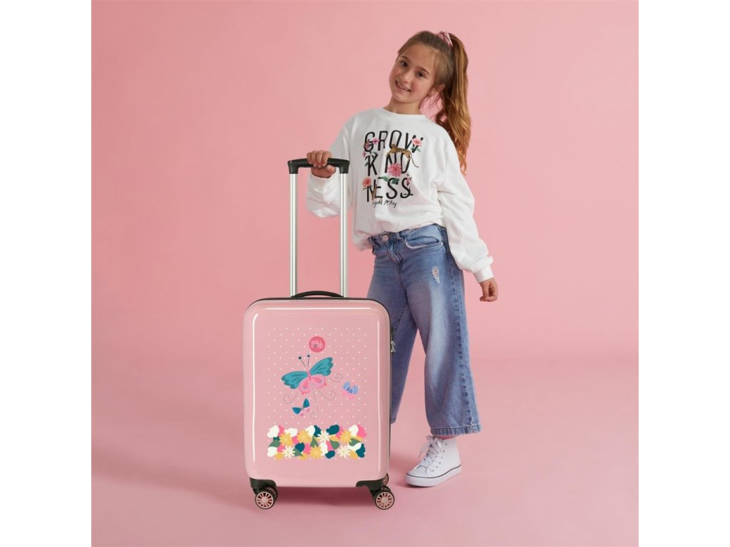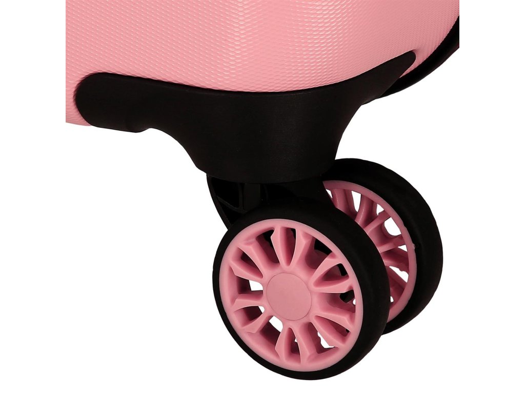 Nádherný cestovní kufr v růžové barvě s kytičky a motýlky je tou nejlepší volbou pro malé i velké cestovatelky. Je z velmi odolného a pevného ABS plastu, má vysunovací rukojeť a pro snadné přenášení ho výrobce vybavil 4 plně otočnými kolečky. Holky je mohou vozit klasicky po 2 kolečkách nebo s ním popojíždět po všech 4. Vnitřní část je rozdělena pro oblečení, které zajišťuje gumový pás s přezkou, a pro drobnosti, jež ukryjete pod látkovou přepážku.