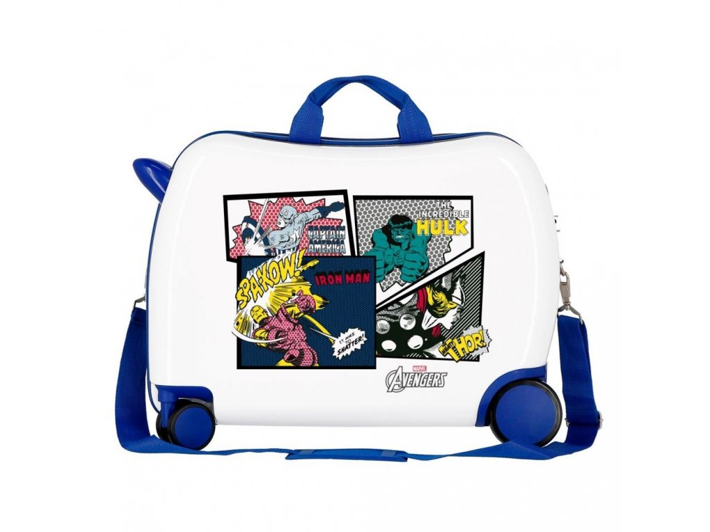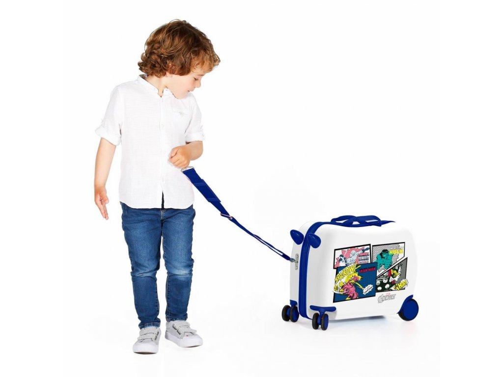 Tohle není jen obyčejný dětský kufřík na kolečkách, který má na sobě obrázek komixu Avengers. Je to i odrážedlo, se kterým si malí kluci užijí spoustu legrace. Divokou jízdu zajistí 4 kolečka, z toho 2 jsou plně otočná a připravená prosvištět každou zatáčku. Děti si na něj mohou sednout a vy je můžete pomocí popruhu táhnout za sebou, nebo si kufr jednoduše přehodíte přes rameno.