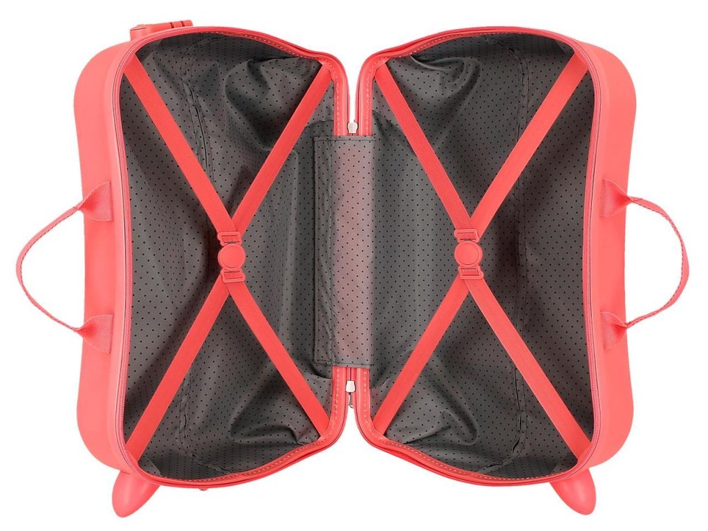 Dětský kufřík na kolečkách je dostatečně prostorný, takže do něj naskládáte vše, co je potřeba. Pomocí gumy s přezkou zajistíte oblečení proti pohybu, které se na vás při otevření nevysype. Zároveň ho můžete použít jako palubní zavazadlo i u nízkonákladových letů. Princezna jen nasedne a dojede až na palubu.