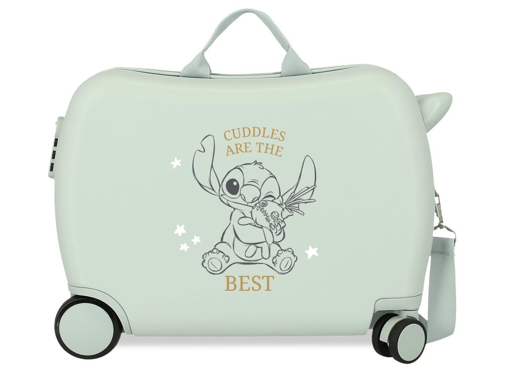 Dětský kufr na kolečkách a odrážedlo 2v1 – Joummabags Stitch "Cuddles are the bes", světle zelený