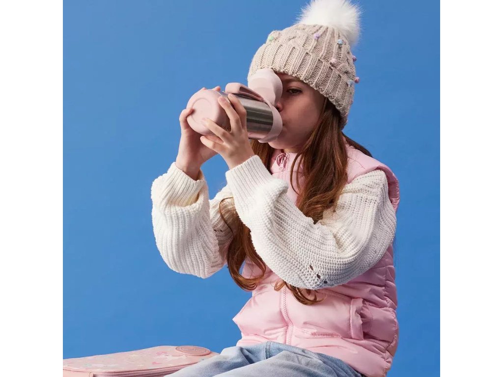 Termoska nabízí snadné průtokové pití z měkké silikonové savičky. Pro otevření stačí stisknout tlačítko. Savička díky víčku zůstává zakrytá, čistá a hygienicky udržovaná. Silikonová rukojeť umožňuje dětem lahev snadno nosit a vytahovat ze školních a sportovních tašek.